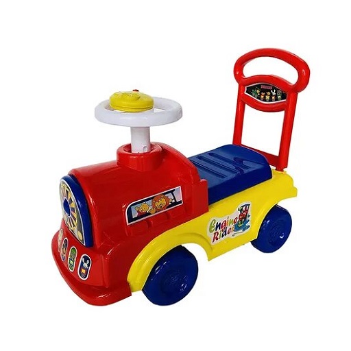 Steering wheel - Manual foot operated push car with functional steering wheel Seat - The ride on has a comfortable seat which ensures maximum comfort Sturdy frame - The ride on has a sturdy and durable frame Storage Space: It has storage space beneath the seat for storing toys & kids essentials Assembly - Easy assembly and disassembly makes sure that the ride on is not an inconvenience
